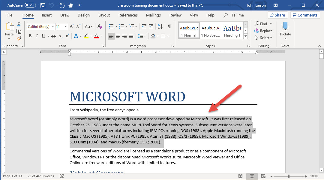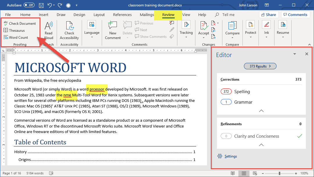 Word autocorrects a lot of mistakes for you, and if it’s not autocorrected, you’ll see colored underlines appear under words to check for spelling, grammar, and clarity.