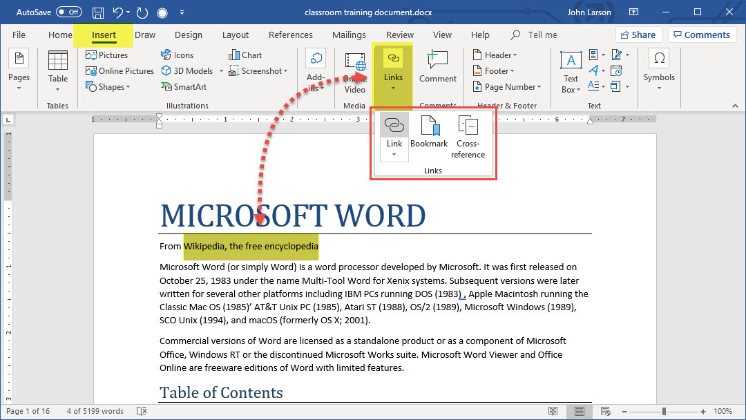 While you’re editing your document, clicking a link lets you edit its display text (friendly text). To follow a link, press Ctrl+Click.