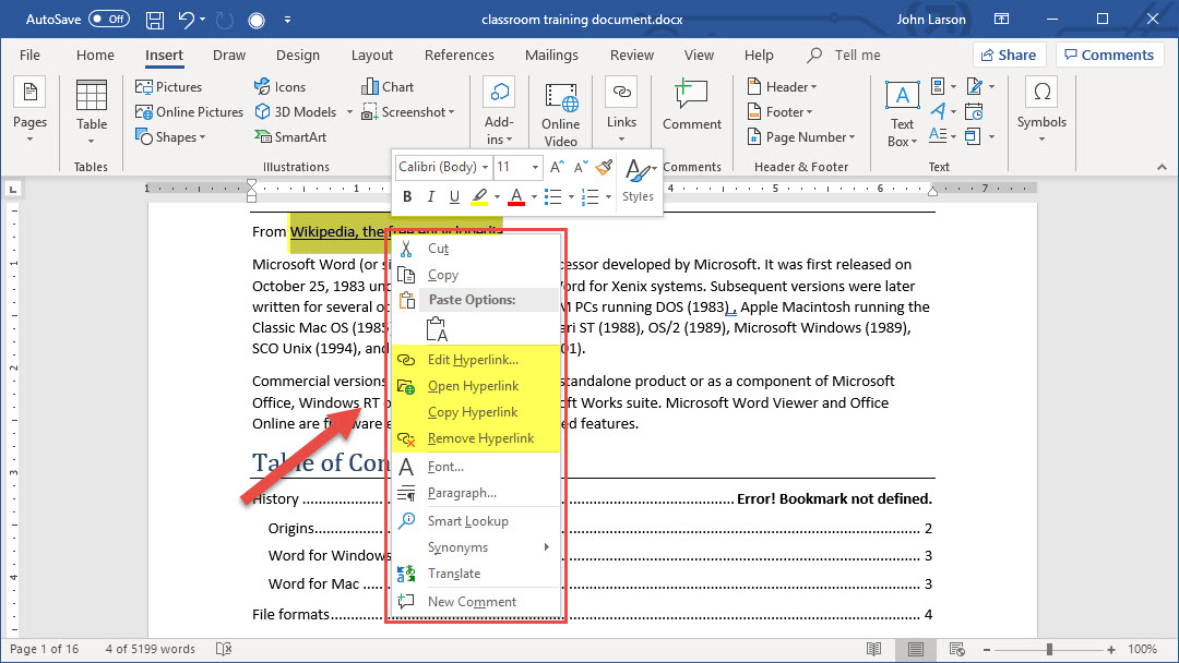 5. Later, if you want to change the link, right-click it and choose Edit Hyperlink.